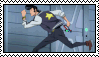 A drawing of a purple haired character with a blond bits in his hair, leaned back with an open mouth smile and his tongue out, while holding uno-like cards in one hand and a joint in the other. He's wearing glasses, fingerless gloves, a cropped purple and turquoise jacket, and as a translucent planet-like ring around his head.